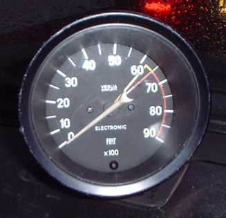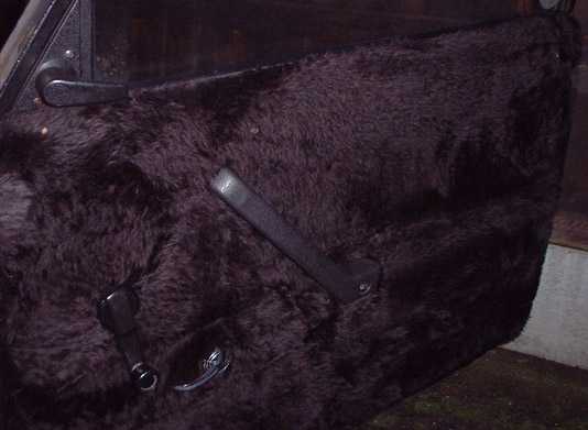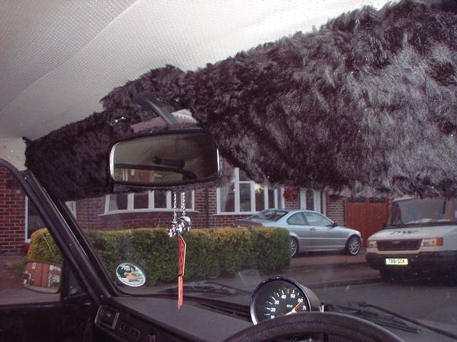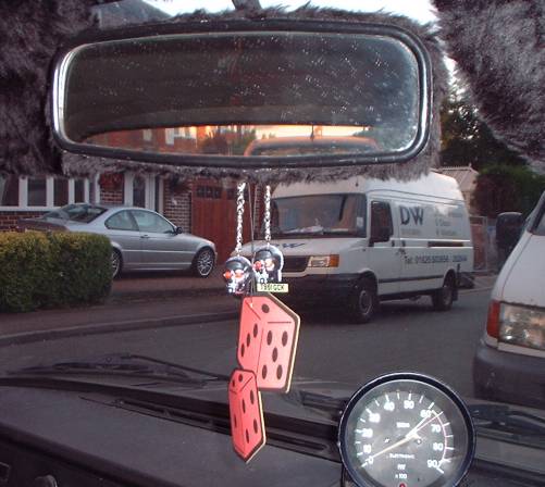 In order of appearance, extended skull shifter, modified dash mounted tacho with LEDs (before and after), fur door trims, chrome